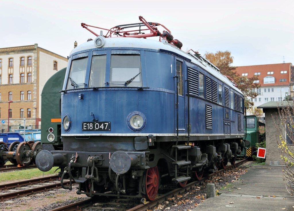 Im Freigelände des Museums konnte dann auch noch die E 18 047 besichtigt werden, die hier seit vier Jahren im Freien ihr Dasein fristet. Die ehemalige Bundesbahnlok mit den originalen Stirnlampen kam nach einer betriebsfähigen Aufarbeitung im Jahr 2005 nach Halle und wurde dort von der Traditionsgemeinschaft Halle P betreut. Die Fristen der Lok liefen allerdings im Jahr 2020 ab. Eine erneute Hauptuntersuchung war geplant, zerschlug sich aber aufgrund des finanziellen Aufwands. Schon damals musste gespart werden.