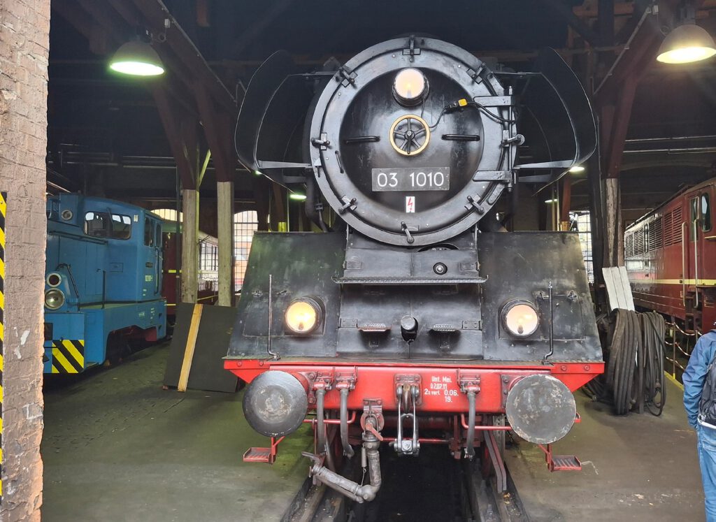 Nach rund zwei Stunden tiefer Einblicke in die Eisenbahnwelt dieses Museums hieß es Abschied nehmen. Hoffentlich war es kein Abschied für immer. Nach einer Pressemitteilung des DB Museums muss das Museum aufgrund der Sparmaßnahmen bei der DB Stiftung seine Pforten zum Jahresende schließen. Dass man damit die überwiegend ehrenamtlich tätigen Mitarbeiter im DB Museum, die seit vielen Jahren das Museum mit hohem persönlichen Einsatz am Laufen halten, vor den Kopf stößt, muss jedem klar sein. Dem Vernehmen nach sind die Stadt Halle und das Land Sachsen-Anhalt hochgradig verärgert über das Vorgehen des DB Museums, zumal in den Standort auch Fördergelder des Landes geflossen sind. Vielleicht findet man unter dem neuen DB-Vorstand noch eine andere Lösung. Wenn Besuchergruppen und Schulklassen die Technik der Eisenbahn am Standort Halle nicht mehr vermittelt werden kann, ist das hochgradig bedenklich und wird dem selbstgestellten Auftrag des DB Museums, „Eisenbahngeschichte hautnah erleben”, in keinster Weise gerecht. Es fühlt sich für viele so an, als ob die Eisenbahntechnik der DDR vom Westen aus abgewickelt werden soll. Und im Jahr 2026 sind Landtagswahlen in Sachsen-Anhalt. Hier kann man nur hoffen, dass zusammen mit der Stadt und dem Land kurzfristig Lösungen gefunden werden, die einen Weiterbetrieb als Museum zumindest im Sommerhalbjahr möglich machen. Vielleicht muss dann auch der Eintrittspreis für das bestens gepflegte Museum etwas angehoben werden. Man traute ja seinen Augen nicht: bei den an uns verteilten Eintrittskarten betrug der Eintrittspreis für Gruppen ab 10 Personen ganze 2 € pro Person! Familien können mit bis zu 4 Kindern das Museum sogar für 6 € besichtigen. Damit kann sich kein Museum finanzieren.