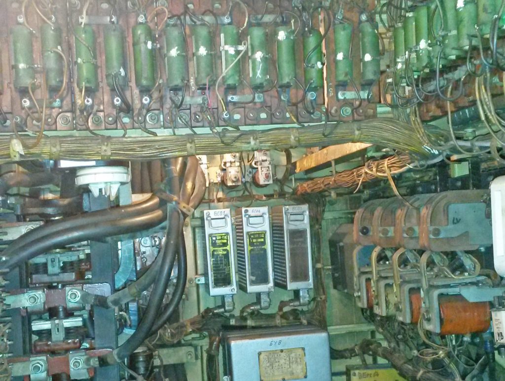 Nach dem geführten Rundgang konnten besonders interessierte Besucher auch noch einige Führerstände der ausgestellten Lokomotiven besichtigen. Bei den Elloks und Dieselloks war auch ein Blick in bzw. ein Gang durch den Maschinenraum möglich. Zu entdecken gab es da einiges. Hinter einer schweren Eisentür auf dem Führerstand der Ludmilla 130 101 konnte man einen Blick in die Hochspannungskammer der Lok werfen. Für alle nicht so Technikinteressierten war das vielleicht eher ein Blick in die „Kammer des Schreckens”. Verschiedenste elektrische Bauteile der dieselelektrischen Lok aus der Lokfabrik in Woroschilowgrad (heute Lugansk) sind in dieser zugänglichen Hochspannungskammer angeordnet, die natürlich nur betreten werden kann, wenn das Fahrzeug ausgeschaltet ist.